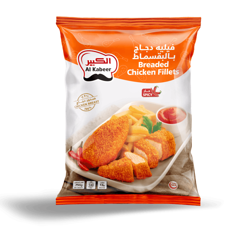 AL KABEER BREADED CHICKEN FILLET HOT/SPICY 750 gm X 8 Pkt