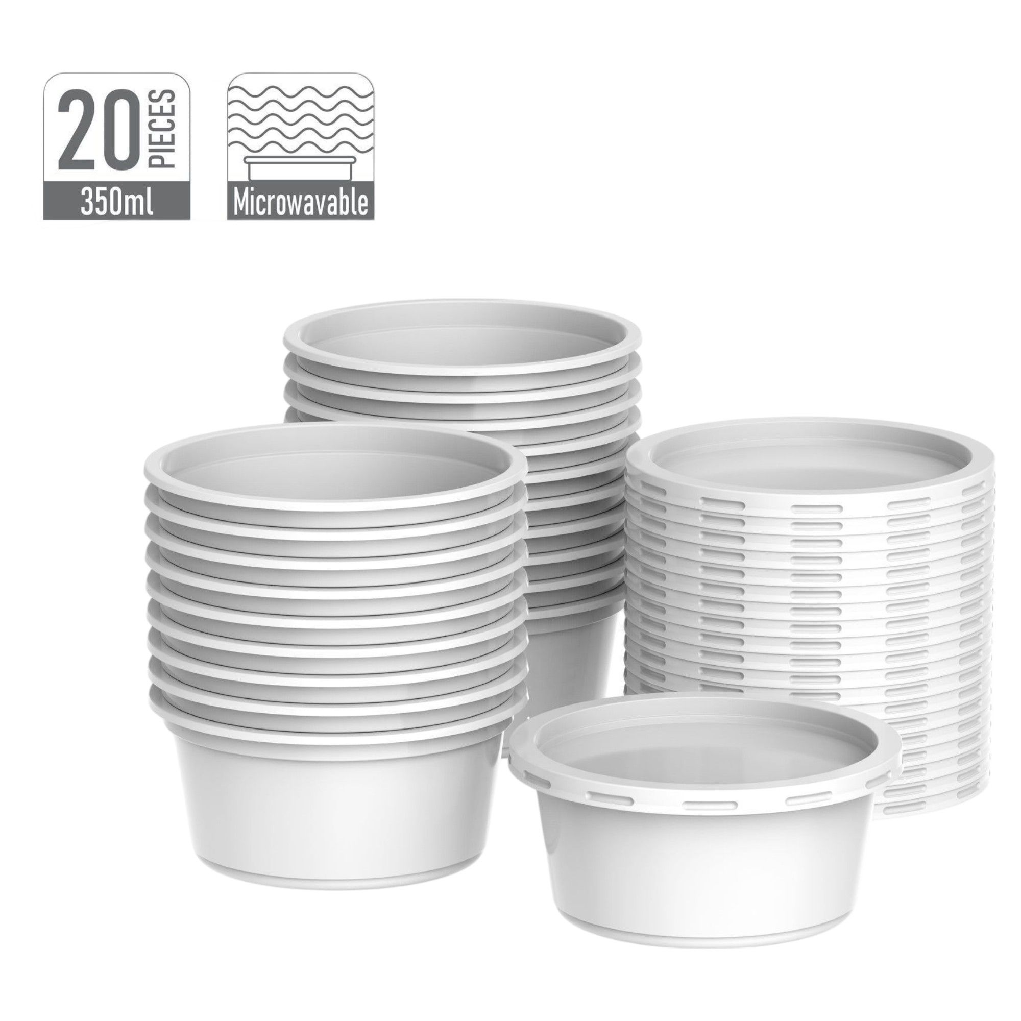 350 ml Pack of 20 Plastic White Catering Container