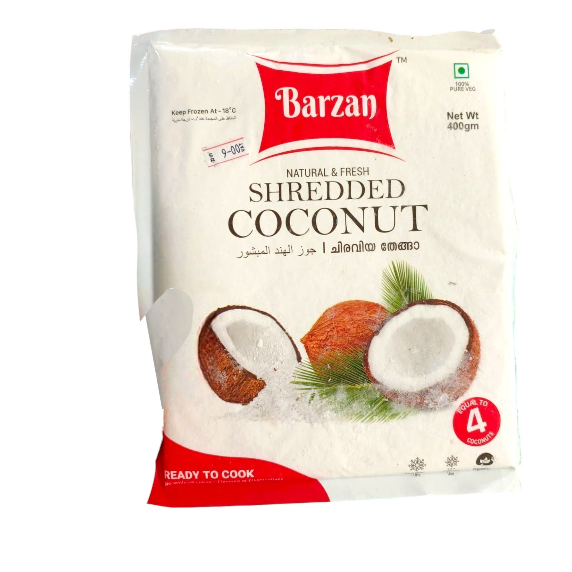 Barzan Natural Frozen Shredded Coconut 20 x 400 g - Carton