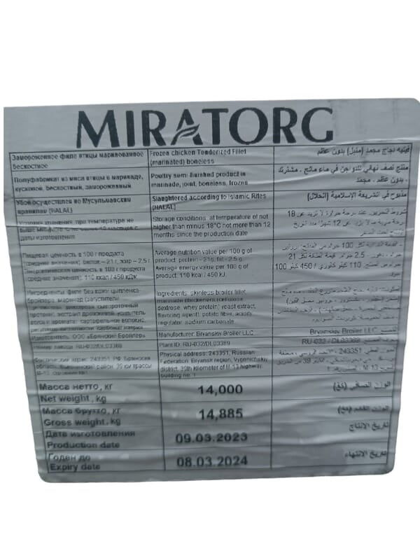 Miratorg Frozen Chicken Tenderized Fillet boneless ( 2 kg x 7 ) Packs