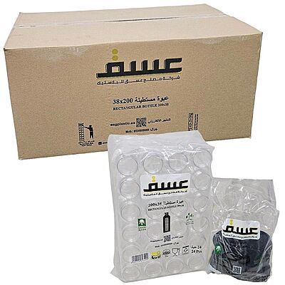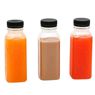 Bottle Juice Rectangular Clear With Black Lid 200 ml Carton 192 pcs